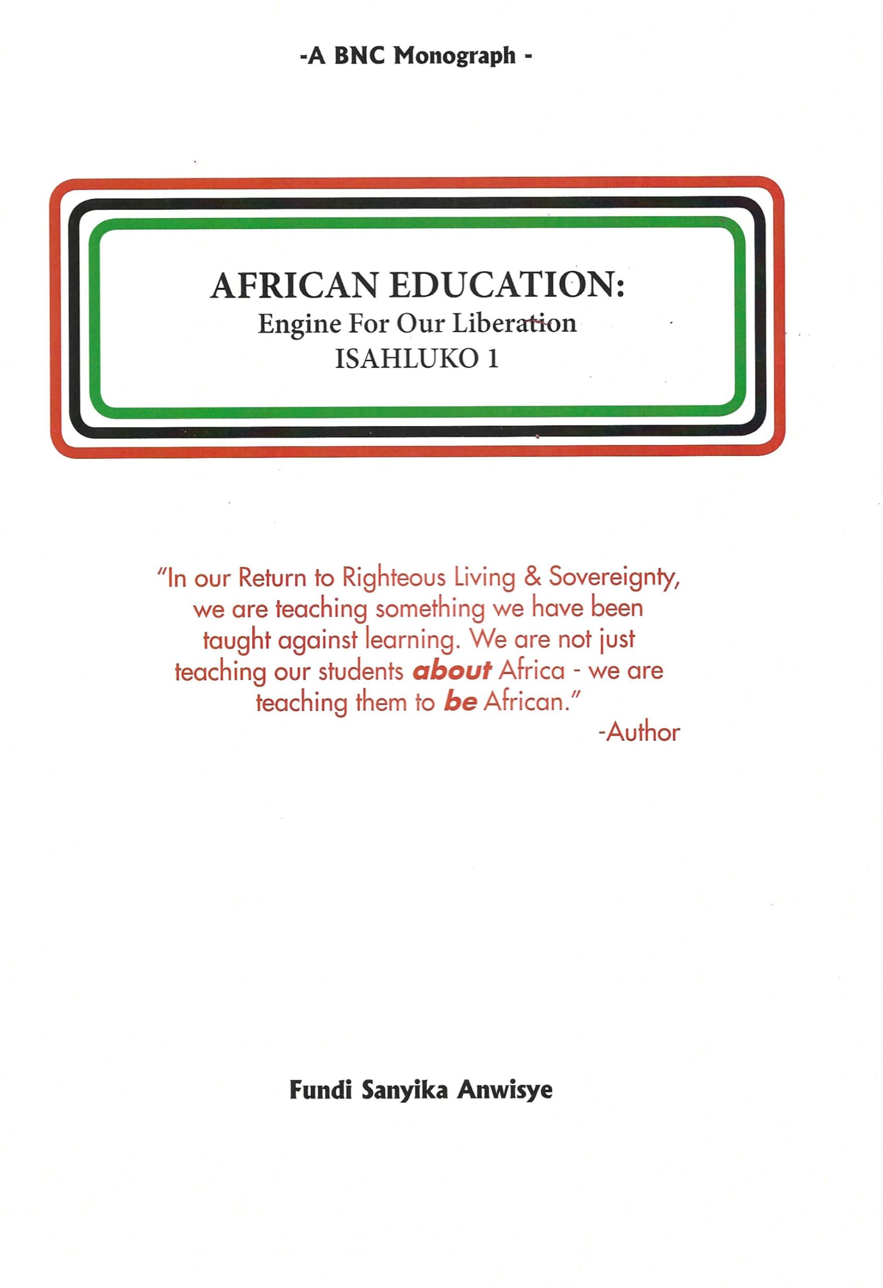 Coming after the author’s Education for Liberation/CIBI at 30 (2002) and CIBI’s Work (2011, 2014) Isahluko 1 (Part 1) of this monograph continues reinforcing the preparation and lifelong fortification of worker-warriors for our Return to Righteous Living & Sovereignty as the purpose of African Education. It touches on some of the components of African Education – from its spiritual-cultural and sociopolitical content to the development of commitment, character, cooperation, collective work & responsibility, honesty & integrity, empathy, self-discipline, a strong work ethic, academic-cognitive-technical fervor, conflict management skills, and Family building skills, including those needed for mate selection, courtship, marriage and effective parenting. (68 Pages)